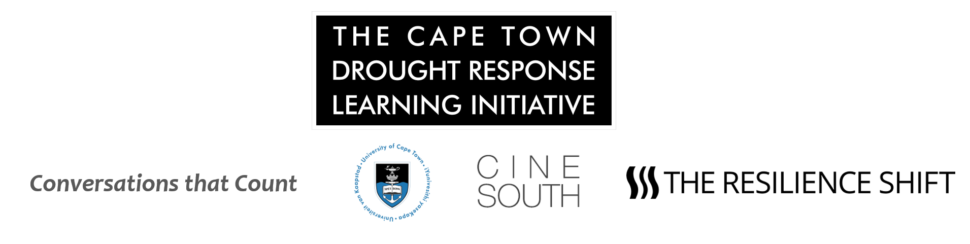 Cape Town Drought Response Film Library   The Cape Town Drought Response Film Library is the first product of the Cape Town Drought Response Learning Initiative – a joint undertaking by the ACDI, Peter Willis of Conversations that Count, and Victor van Aswegen of CineSouth Studios that began in mid-2018. This film library showcases interviews from a range of people who were intensely involved in crafting Cape Town’s response to the 2017-18 water crisis. Each interviewee reflects in detail upon what happened in the crisis from their perspective, why it happened, what worked and what didn’t work, and what lessons we have learned or could learn from the experience. OUR FUNDING PARTNERS