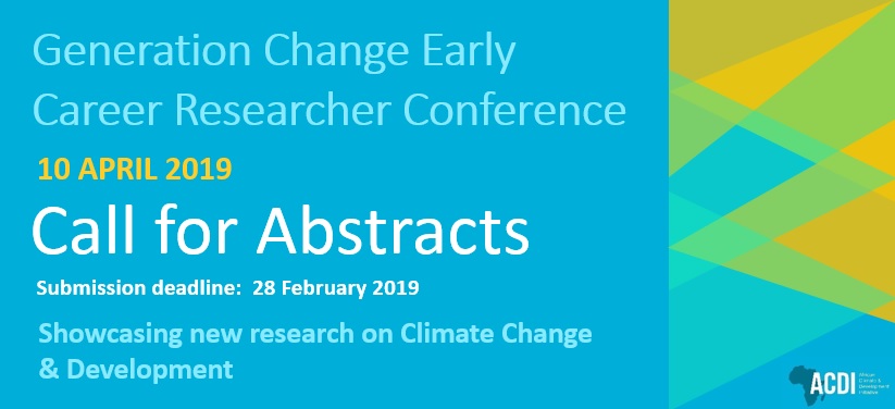The African Climate & Development Initiative (ACDI) hereby invites you to submit an abstract for the ACDI’s upcoming Generation Change Early Career Researcher Conference, taking place at Wolfson Auditorium, UCT Medical School Campus, Observatory, on 10 April 2019.